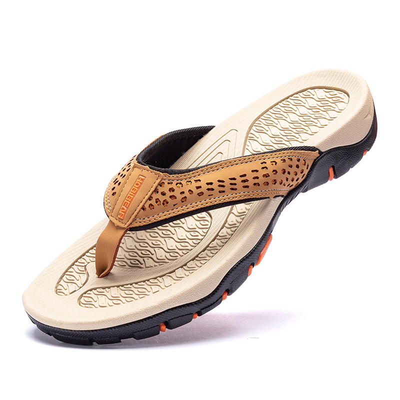 Men's fashion artificial leather flip-flops, soft insoles and non-slip outsole, durable and comfortable to wear