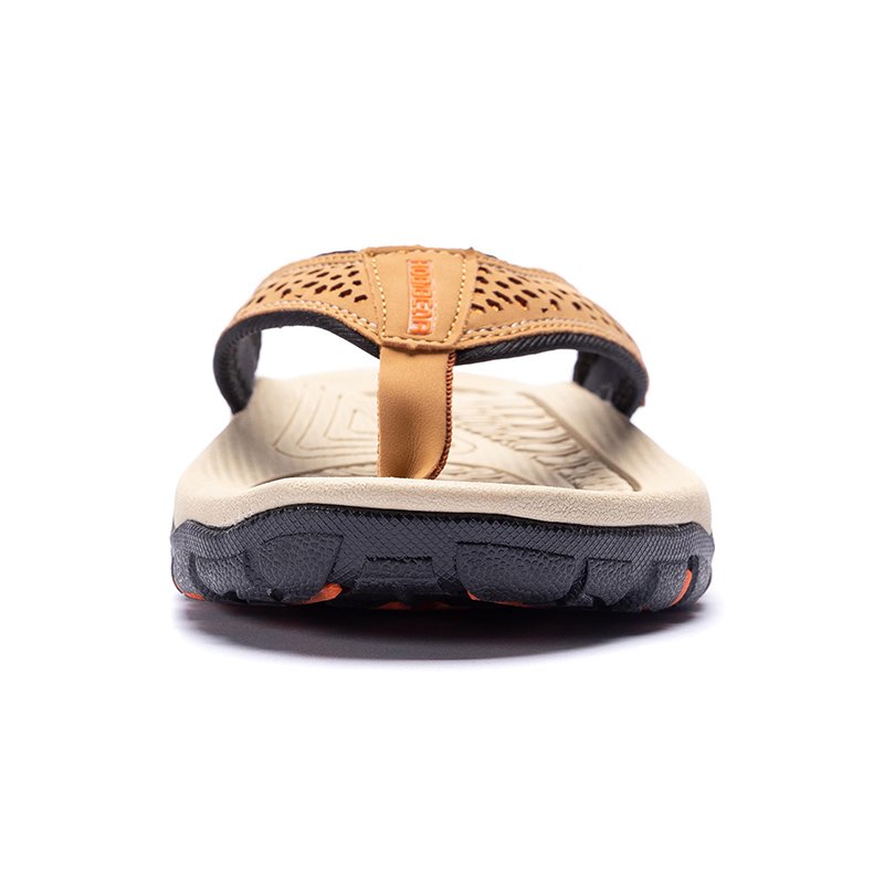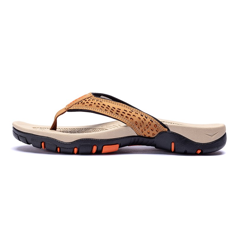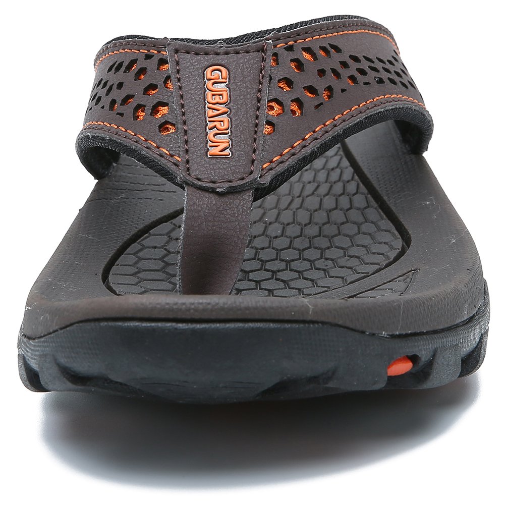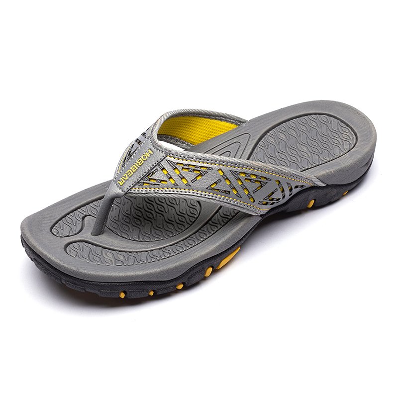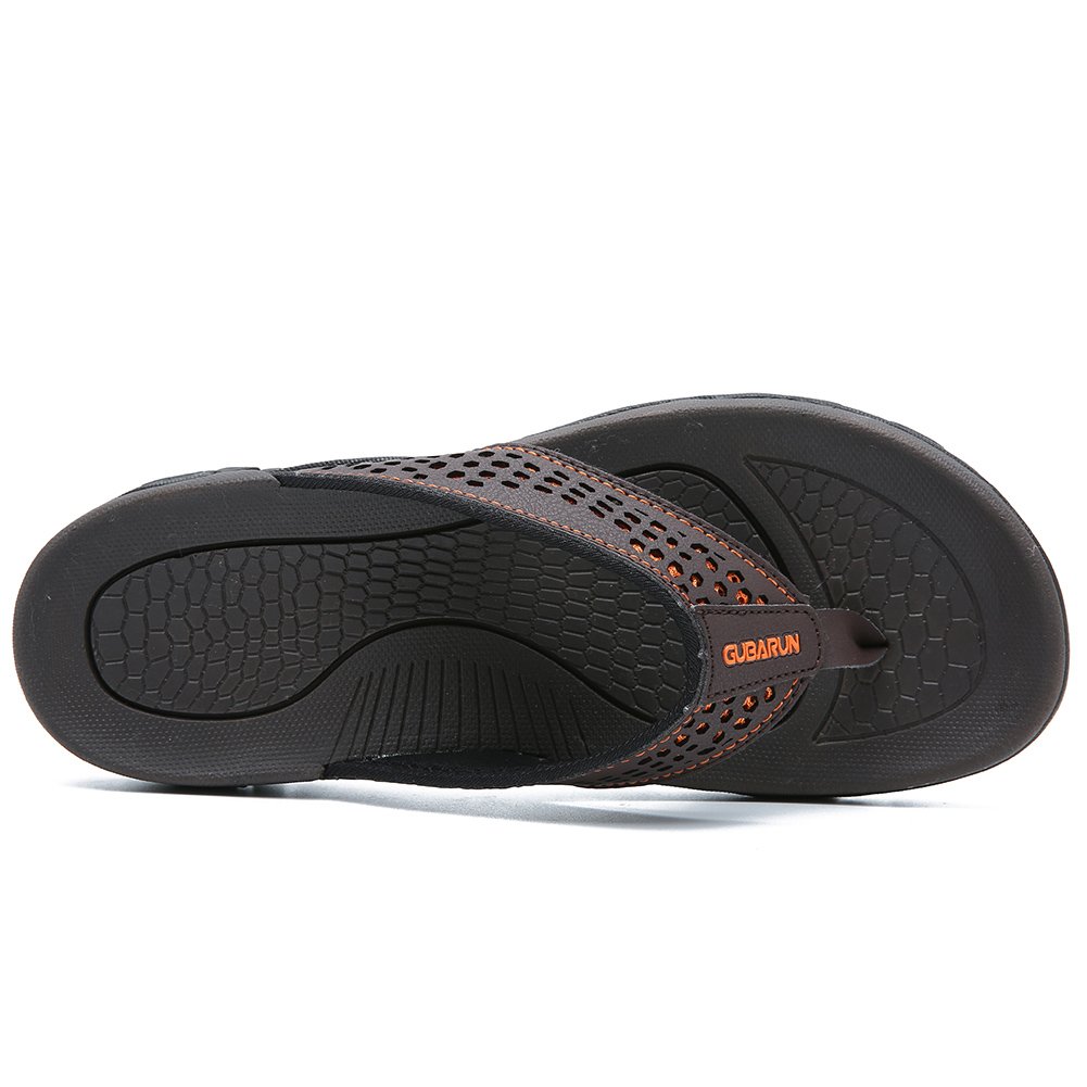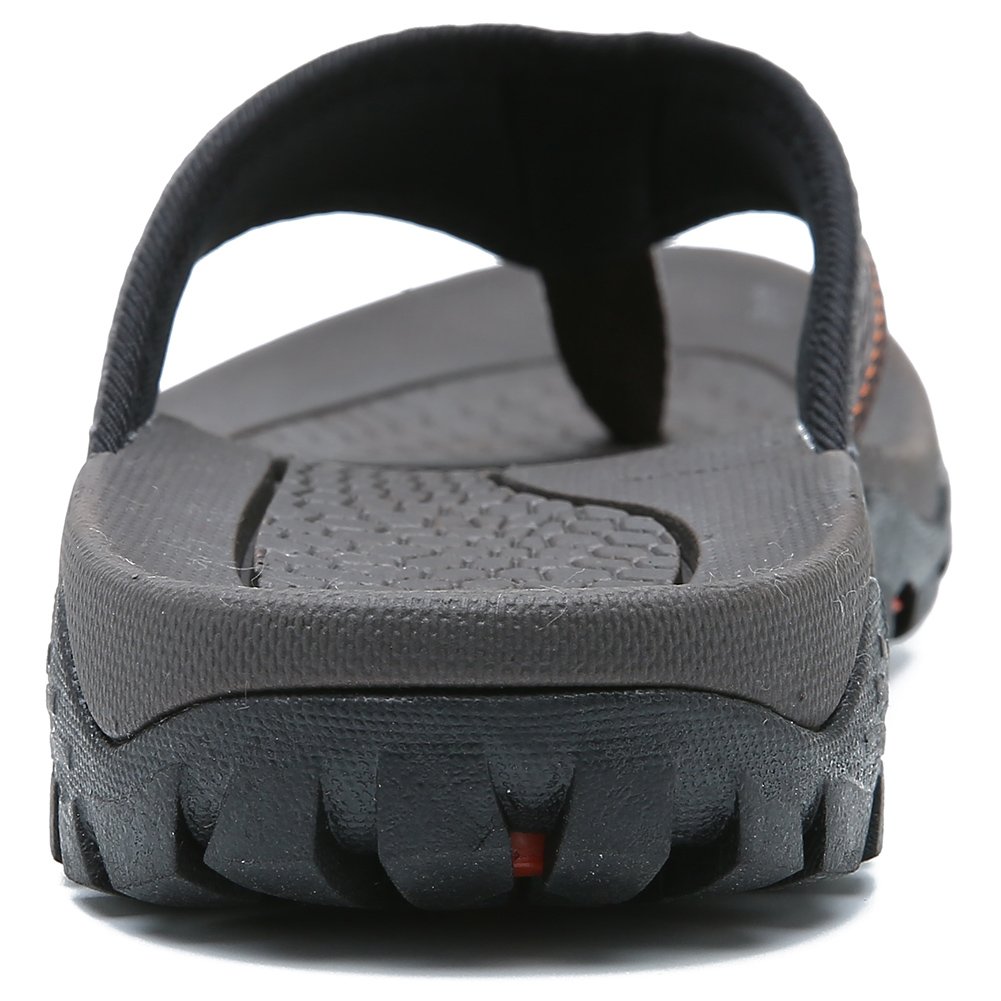 COMFORTABLE INSOLES: Shock-absorbing men's flip-flops. Herringbone Rubber outsole gives you durable strong traction control. The bottom is made of durable rubber tread that provides a good skid and wears resistance, and grips easily to surfaces.