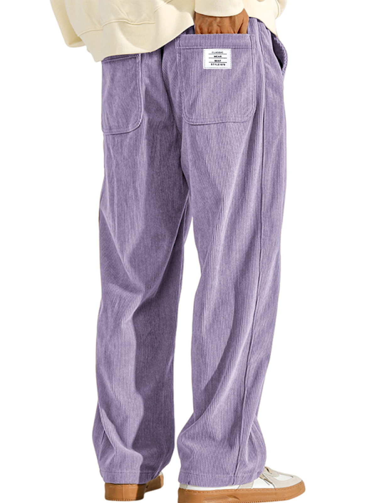 Men's Stylish Vintage Corduroy Multi-pocket Drawstring Casual Pants with Embroidered Label