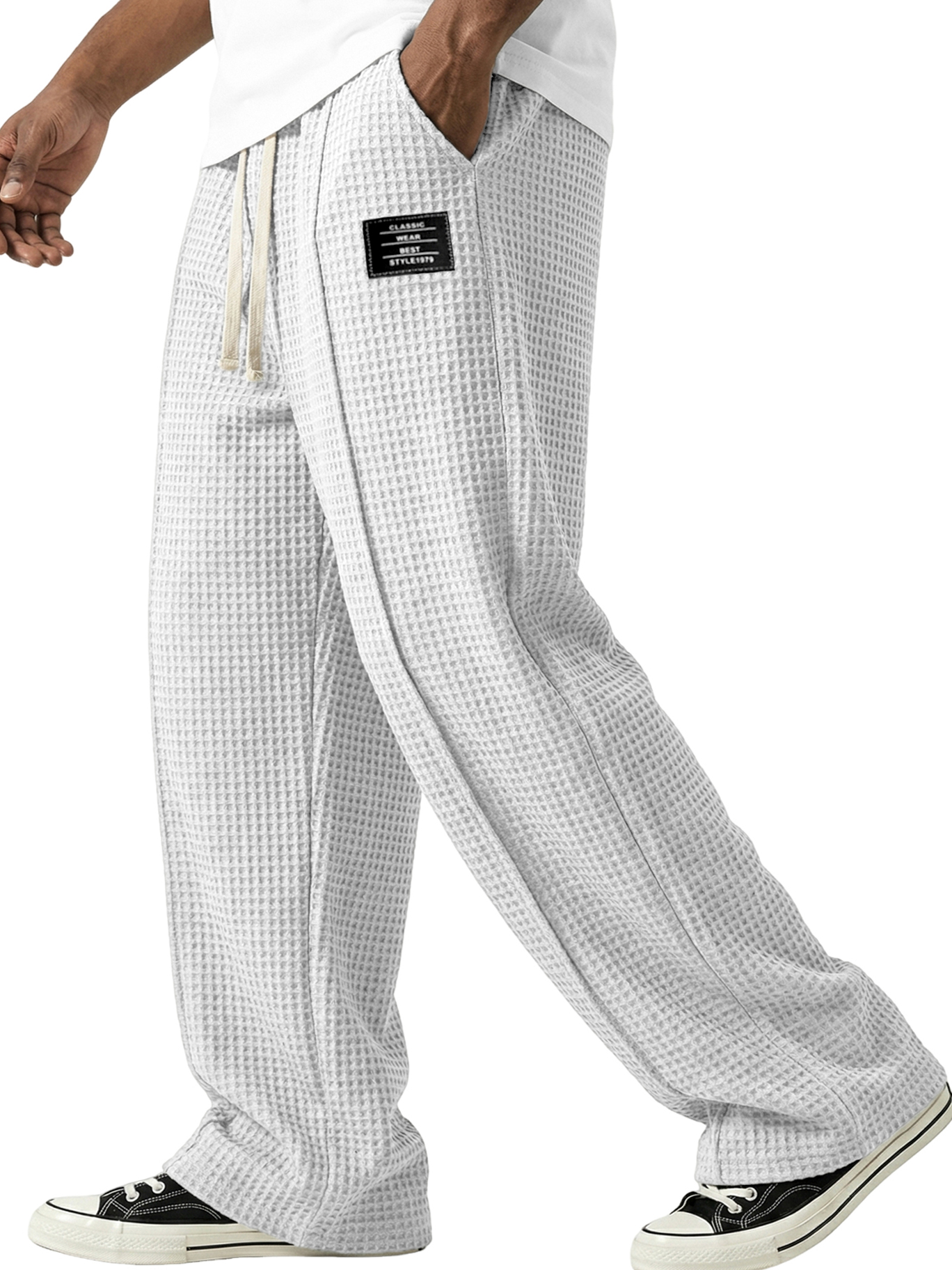 Waffle-textured Minimalist Lace-up Embroidered Pants